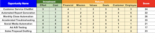 More importantly, we create a prioritization framework that goes beyond financial metrics. This framework evaluates each opportunity based on its estimated ROI, alignment with your values, and contribution to your strategic goals—ensuring your AI initiatives serve both your bottom line and your mission.